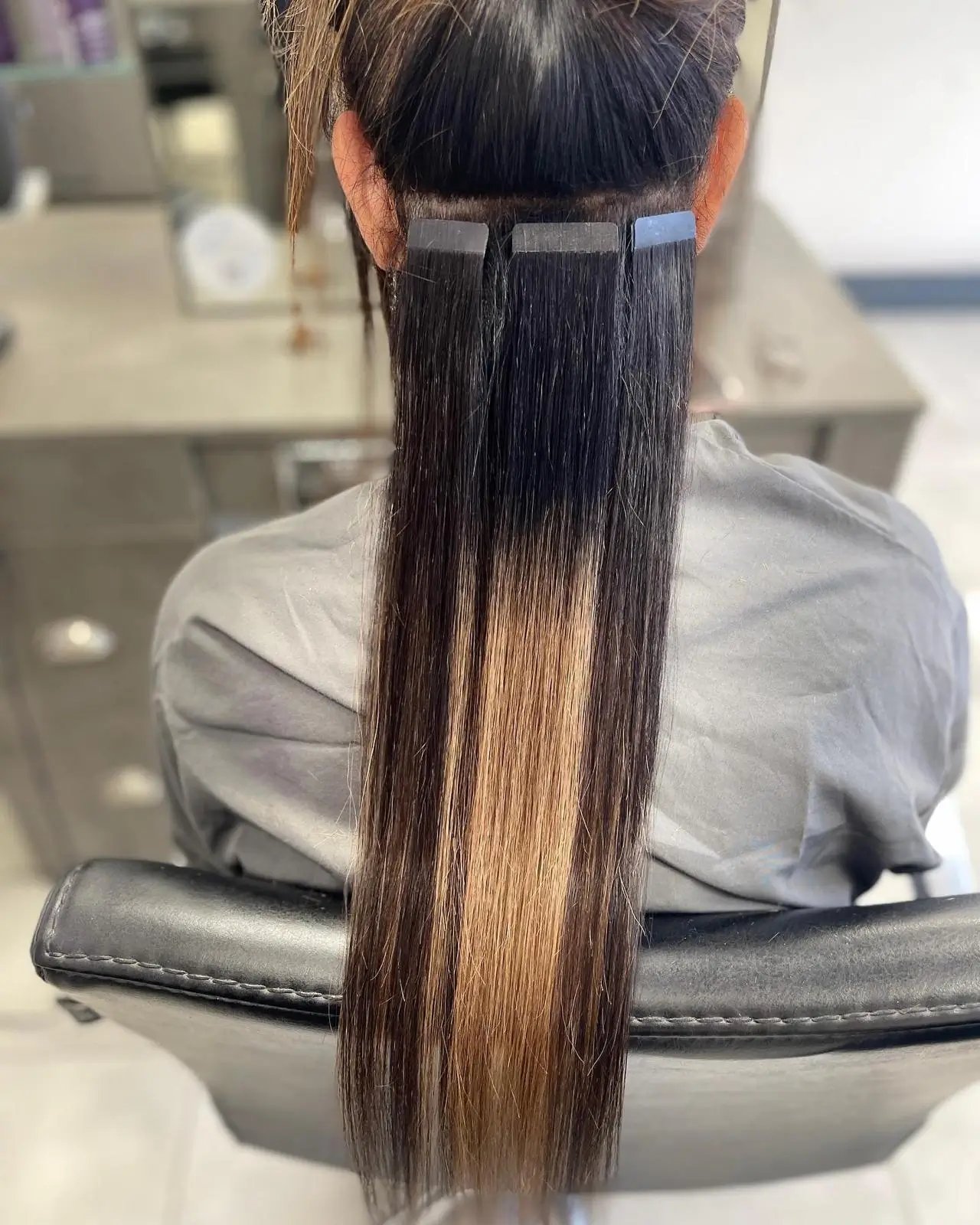 Tape hair extensions lie flat to the head giving a seamless and natural look, with maintenance every 6/8weeks.